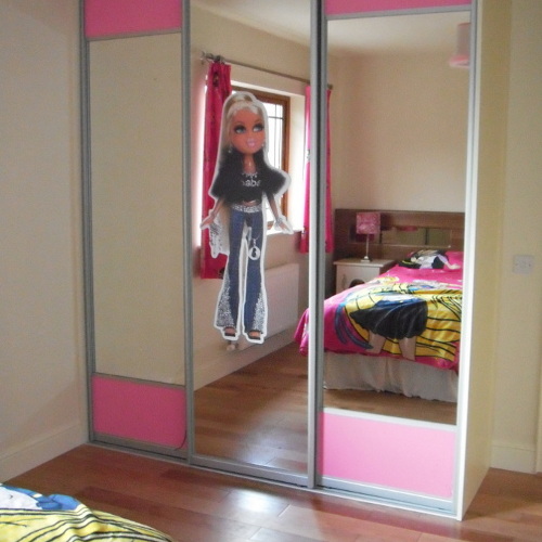 2 door sliding wardrobe Pink & pure white glass doors, maple gable 3 door robe under window Pure white glass doors, maple top Interior View 2 door sliding wardrobe Maple units, pull down hanging rails, standard drawers, cosmetic & jewellery drawers, show shleves & ... Visit Document